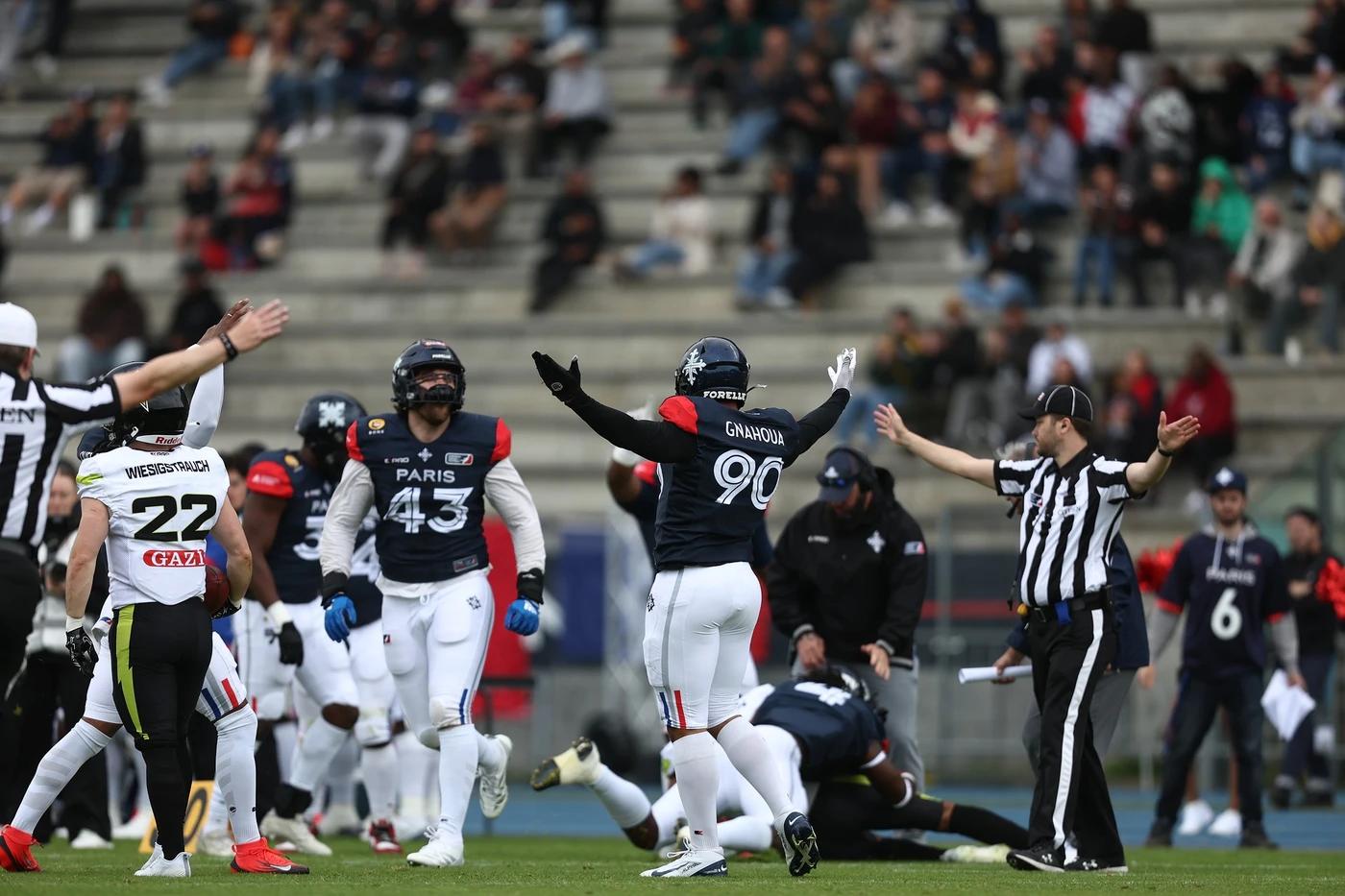 The lone score of the game came late in the first quarter when Paris quarterback Jaylon Henderson found French wideout Rémi Bertellin in the end zone. Although the extra point was missed, the touchdown stood as the game’s only successful offensive play that resulted in points. From that moment on, the Musketeers’ defense took center stage - and never gave up control.